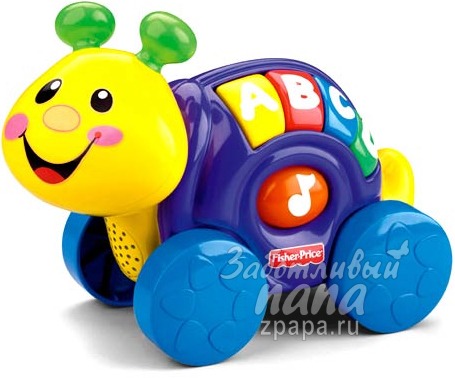 Улыбчивая улитка серии "Смейся и Учись" предназначена для малышей от 6 до 36 месяцев. Она делает знакомство с алфавитом и основными цветами увлекательным для малыша! Просто нажимайте на кнопки, чтобы прослушать названия букв, цветов и забавные звуки. Когда малыш катает улитку по полу или нажимает на светящуюся музыкальную кнопку, звучит веселая песенка, которой можно подпевать. На панцире улитки четыре большие кнопки (буквы А, Б, В, Г) разных цветов (желтого, красного, синего, зеленого). При нажатии на клавишу улитка произносит название соответствующей буквы или цвета, одновременно загорается светящаяся кнопка на боку улитки. Чтобы пробудить интерес малыша, приготовьтесь ползать по полу. Поставьте игрушку на пол так, чтобы малыш не смог дотянуться. Малыш захочет подползти к ней, чтобы рассмотреть светящуюся улитку. Напевайте мелодии в такт, и вскоре Ваш малыш тоже приобретет склонность к пению. Улитка помогает ребенку обучаться в процессе игры: знакомит малыша с буквами и с основными цветами; звуки, слова и музыка побуждают малыша подражать им вслух; расширяет словарный запас; помогает развивать у ребенка логику.